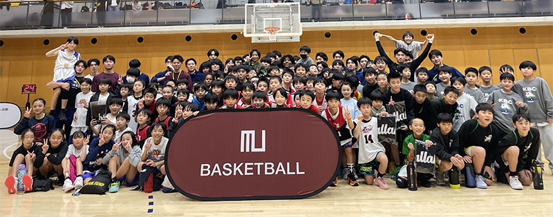 本大会では、男子籠球部の学生が各チームに3名ずつ帯同し、ウォーミングアップや基礎技術のアドバイス、試合中の声掛け、試合後の振り返りなどを行いました。順位による表彰は実施せず、学生がプレーの姿勢や挑戦する意志、成長の過程に着目し、チームごとに1名を「MU賞」として選出したことも特徴です。