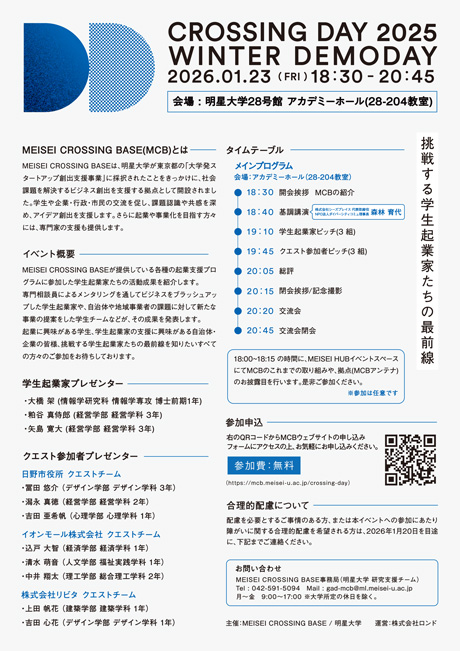 ※詳細は「CROSSING DAY 2025 WINTER – DEMODAY」チラシをご覧ください