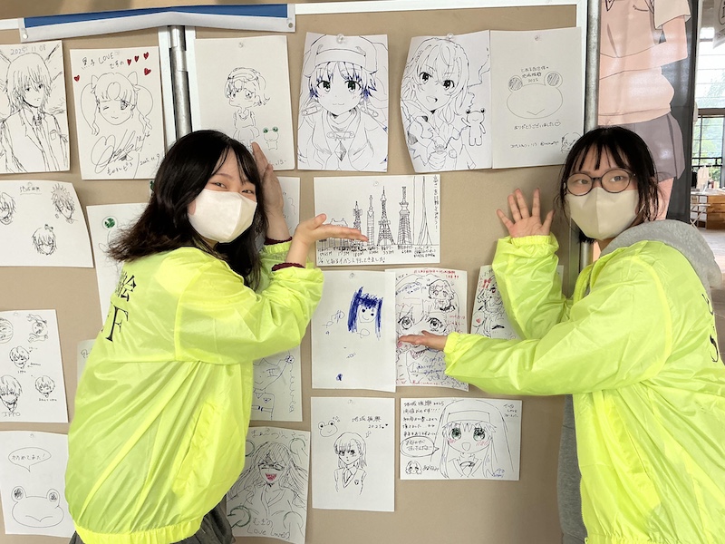 片野ゼミの所属学生が両日で、これらの運営スタッフを務め、学生企画のお絵描きメッセージコーナーも大人気でした。ふだんはファンとして利用する側の学生が、イベント運営側を体験して多くのファンとの交流やコンテンツ利用について学びました。