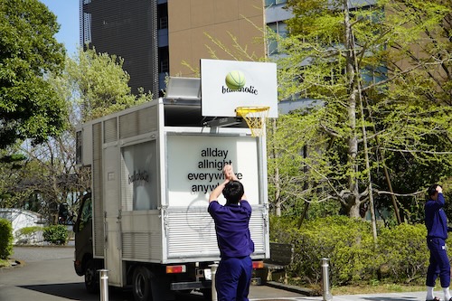 会場外にはストリートバスケットゴールが設置され、来場者が自由にプレーを楽しむ姿が見られました。