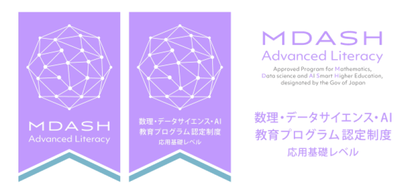 データサイエンス学環では, 文部科学省の「数理・データサイエンス・AI教育プログラム認定制度(応用基礎レベル)」の認定を受けた教育プログラムとして、応用基礎レベルの「明星大学データサイエンス学修プログラム」を設けています。